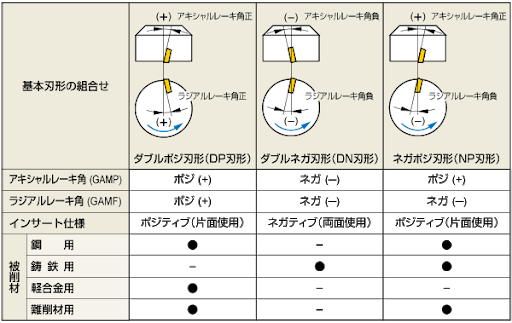 ネガ ワークに対して切れ刃がマイナスに進入する 両面使える → ブレイカーによって刃先をポジにする(逃げ角ができる)